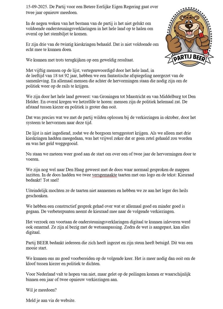 Nieuws Partij BEER